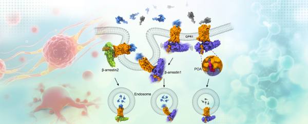 趋化素是重要的脂肪因子,参与调控脂质代谢和胰岛素敏感性,与肥胖、糖尿病等代谢性疾病的发生发展密切相关。同时,趋化素可介导免疫细胞定向迁移至炎症部位,参与机体抵御病原入侵、维持稳态及修复组织损伤等重要生理过程,在炎症与代谢之间发挥“桥梁”作用。近日,中国科学院上海药物研究所研究团队等,在趋化素受体功能调控机制研究中取得进展。研究首次全面阐释了阻遏蛋白对趋化素受体GPR1的功能调控分子机制,拓展了学界对GPCR非典型信号转导和调控的认识与理解。