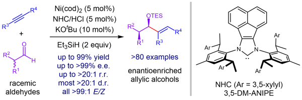 动态动力学不对称醛-炔还原偶联反应