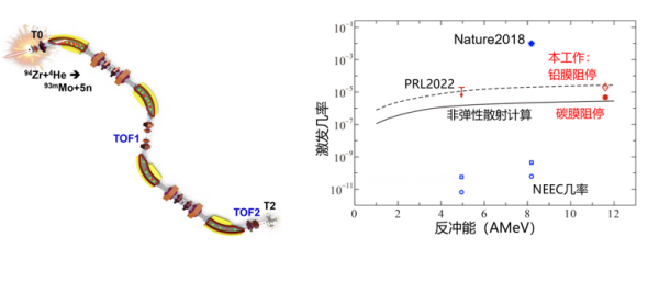 研究团队基于兰州重离子研究装置的放射性束流线,进一步发展了低本底、高灵敏度的实验方法,成功实现了高纯度钼-93m束流的制备与测量。经过精密纯化后,钼-93m离子被注入到覆盖有铅箔或碳箔的探测器中。团队通过捕捉特征伽马射线,精确测量了钼-93m离子在穿透铅与碳材料减速过程中的能量释放几率,分别约为十万分之二与百万分之五。